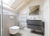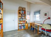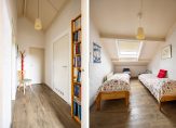 Ruimte is er niet alleen op de begane grond, maar ook op de eerste verdieping. Grote ramen, het schuine dak en de vide zorgen voor een etage die heel licht en ruimtelijk oogt. Aan de voorzijde, bij de vide, is een deur naar het balkon aan de voorzijde.