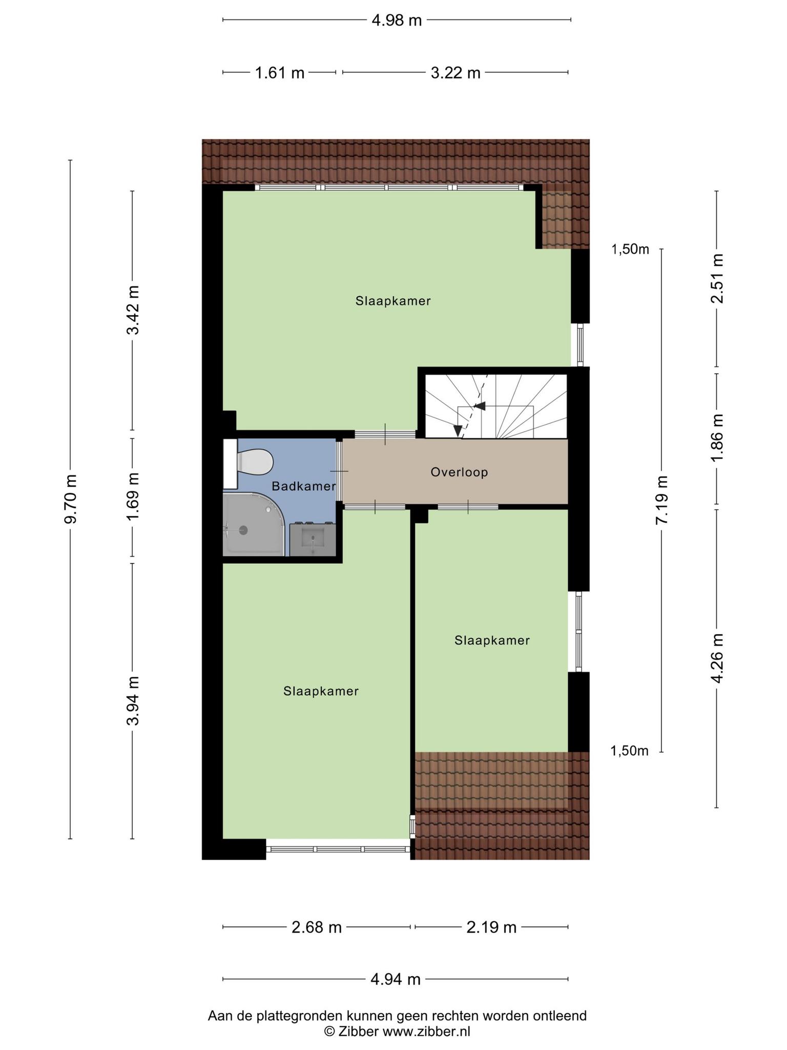 Overloop met toegang tot de 3 slaapkamers. Door de royale dakkapel is de slaapkamer aan de achterzijde ruim. De slaapkamers zijn ca. 15, 12 en 7 m² groot. De moderne badkamer is vernieuwd in 2023 en uitgerust met een tweede toilet (sanibroyeur), een douche en een stijlvol wastafelmeubel.