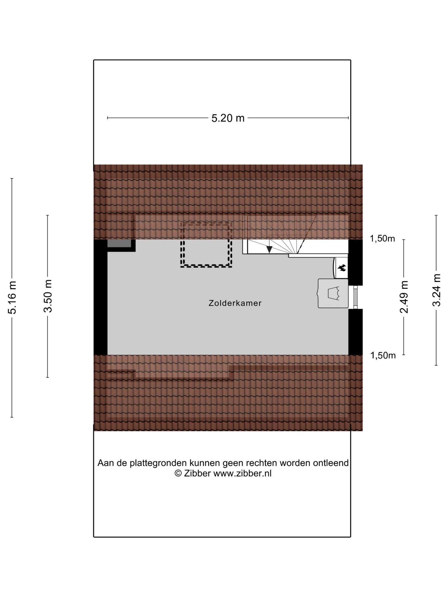Via een vaste trap kom je op de zolderkamer van ca. 13 m² met witgoedaansluitingen en c.v. opstelling, zijraam en dakraam. De mogelijkheid bestaat om hier een 4e slaapkamer te maken.