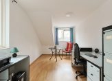 1e verdieping: overloop, 4 grote slaapkamers met laminaat op de vloer. Elke slaapkamer heeft dusdanige afmetingen dat er een 2-persoonsbed in past, handig voor gezinnen met grotere kinderen! Bovendien zijn er 2 keurige badkamers op deze verdieping. De grootste badkamer is uitgerust met een ligbad, wastafelmeubel en hangend toilet, de 2e badkamer heeft een douche, wastafelmeubel en hangend toilet.