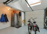 Aan de voorzijde beschikt de woning over een ruime oprit met parkeergelegenheid voor één auto, inclusief een eigen laadpaal. De woning is toegankelijk via zowel de garage als de verzorgde zij-entree. De garage is een absolute eyecatcher: breder dan standaard, keurig afgewerkt en voorzien van een lichtkoepel die zorgt voor prettig daglicht. De ruimte biedt plaats aan een auto, fietsen en extra opslag. Daarnaast beschikt de garage over een elektrisch bedienbare garagedeur, een separate zijdeur en een wateraansluiting. Zelden zien we zo’n goed georganiseerde ruimte, die keurig is afgewerkt!