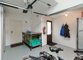 The garage is a standout feature: wider than standard, immaculately finished and flooded with natural daylight through a skylight. It comfortably accommodates a car while leaving ample space for bicycles and storage. A separate side door, electric garage door and water connection further enhance functionality.