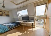 The second floor offers a large fourth bedroom with plenty of light from three roof windows and a hatch to the attic storage. There’s also a separate room with the central heating boiler and a laundry room for washing appliances. It’s also possible to create more living space here by closing off the mezzanine and adding a dormer window.