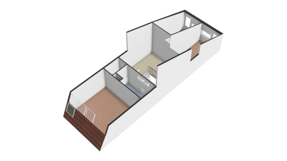 De tweede verdieping biedt een royale vierde slaapkamer met veel licht dankzij drie dakramen en een luik naar de bergvliering. Verder is er een aparte ruimte met cv-ketel en een washok voor de wasapparatuur. Ook hier is het mogelijk extra woonoppervlak te creëren door de vide dicht te maken i.c.m. de plaatsing van een dakkapel.
