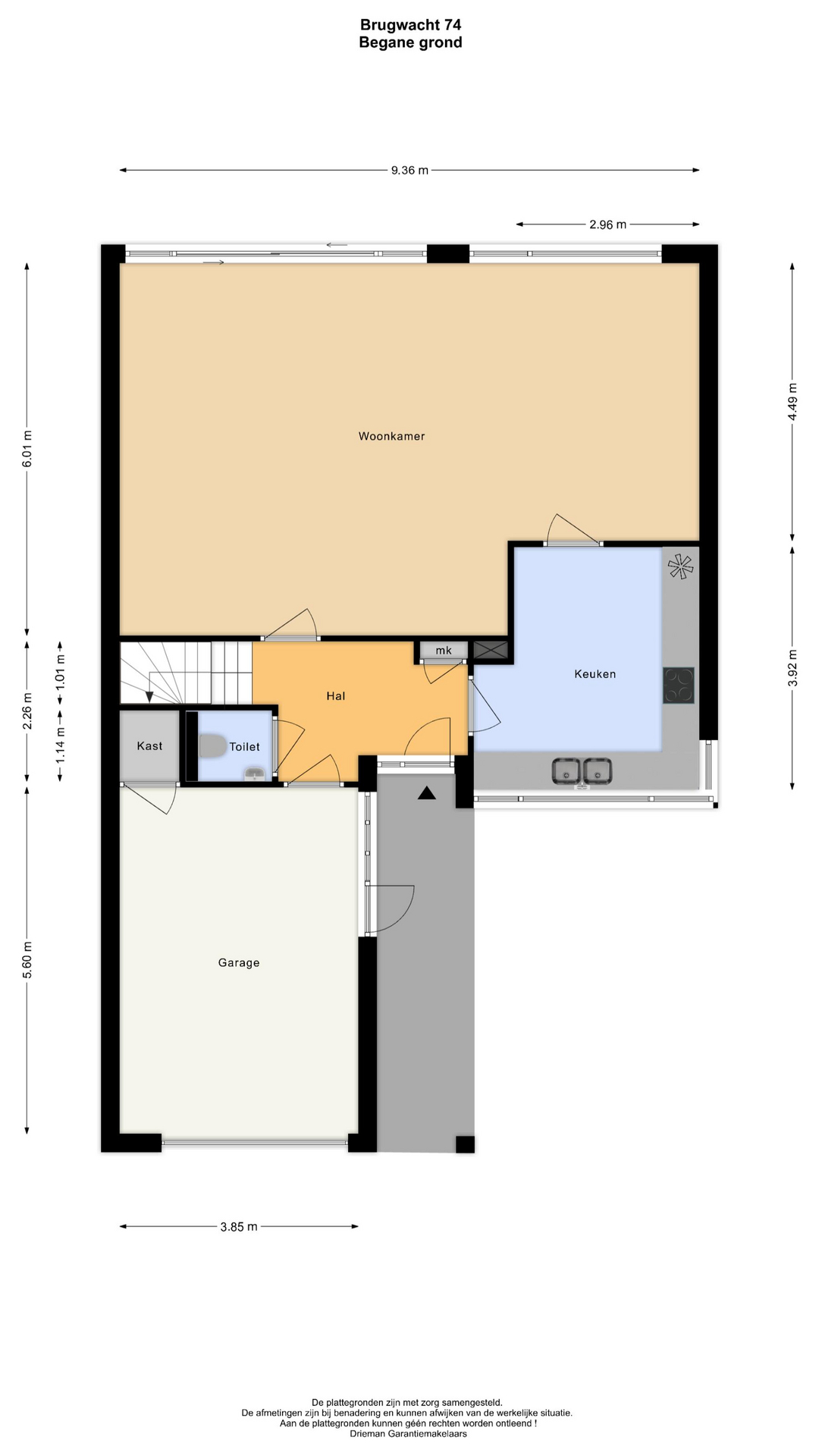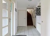 Via de entree komt u binnen in de ruime hal met praktische meterkast (10 groepen en aardlekschakelaar), een deur naar de lekker brede, inpandige garage (3.85 x 5.60m) met vaste grote bergkast, elektrisch bedienbare garagedeur en aparte loopdeur (ook van afstand te bedienen). Het toilet is voorzien van een vrijdragend closet en een fonteintje.
