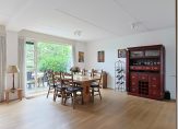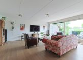 The living room spans the full width of 9.36m facing the water and backyard. This provides not only beautiful views over the Dwarswatering but also wonderful natural light through large windows. The atmospheric wooden flooring gives the space a warm and luxurious appearance. Through sliding doors, you have direct access to the sunny backyard with various terraces.