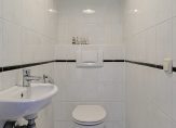 The second bathroom is fully equipped with shower and washbasin. A separate second toilet with wall-hung WC provides additional luxury.