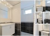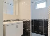 Through the entrance, you enter the spacious hallway with practical meter cupboard (10 circuits and earth leakage switch) and door to the conveniently wide integrated garage (3.85 x 5.60m) with large built-in storage cabinet, electrically operated garage door, and separate pedestrian door (also remotely operated). The toilet features a wall-hung WC and small washbasin.