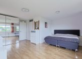 De grote slaapkamer op de tweede verdieping is een waar juweeltje, met toegang tot een enorm dakterras van ca. 33m2 op het zuidwesten. Vanaf dit terras geniet u van een adembenemend, panoramisch uitzicht over de Dwarswatering – een perfecte plek om de dag te beginnen of te eindigen want u heeft hier praktisch de hele dag zon, als deze schijnt.