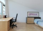 The landing provides access to a spacious storage room where washing appliances and central heating boiler are located – conveniently tucked away but easily accessible. The central heating boiler was renewed in 2024 and the mechanical ventilation unit in 2025 – no worries for the foreseeable future!