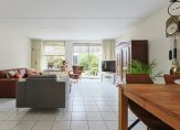 Via de schuifpui stap je zo de achtertuin in — een fijne buitenruimte waar je ‘s middags en ‘s avonds kunt genieten van de zon. Er is een praktische stenen berging met elektra aanwezig en een achterom zodat de tuin ook met de fiets gemakkelijk bereikbaar is.