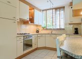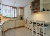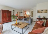 Via de ruime hal, waar het toilet zich bevindt, kom je binnen in de lichte woonkamer met open keuken. Dankzij de grote raampartijen en de schuifpui naar de tuin geniet je hier volop van het daglicht. De keuken is momenteel in een praktische L-opstelling geplaatst en biedt voldoende werk- en kastruimte. Er is zelfs een gezellig barretje waar je ’s ochtends kunt opstarten met een kopje koffie. Liever een andere opstelling? Een U-keuken of zelfs een (schier)kookeiland past hier ook goed.