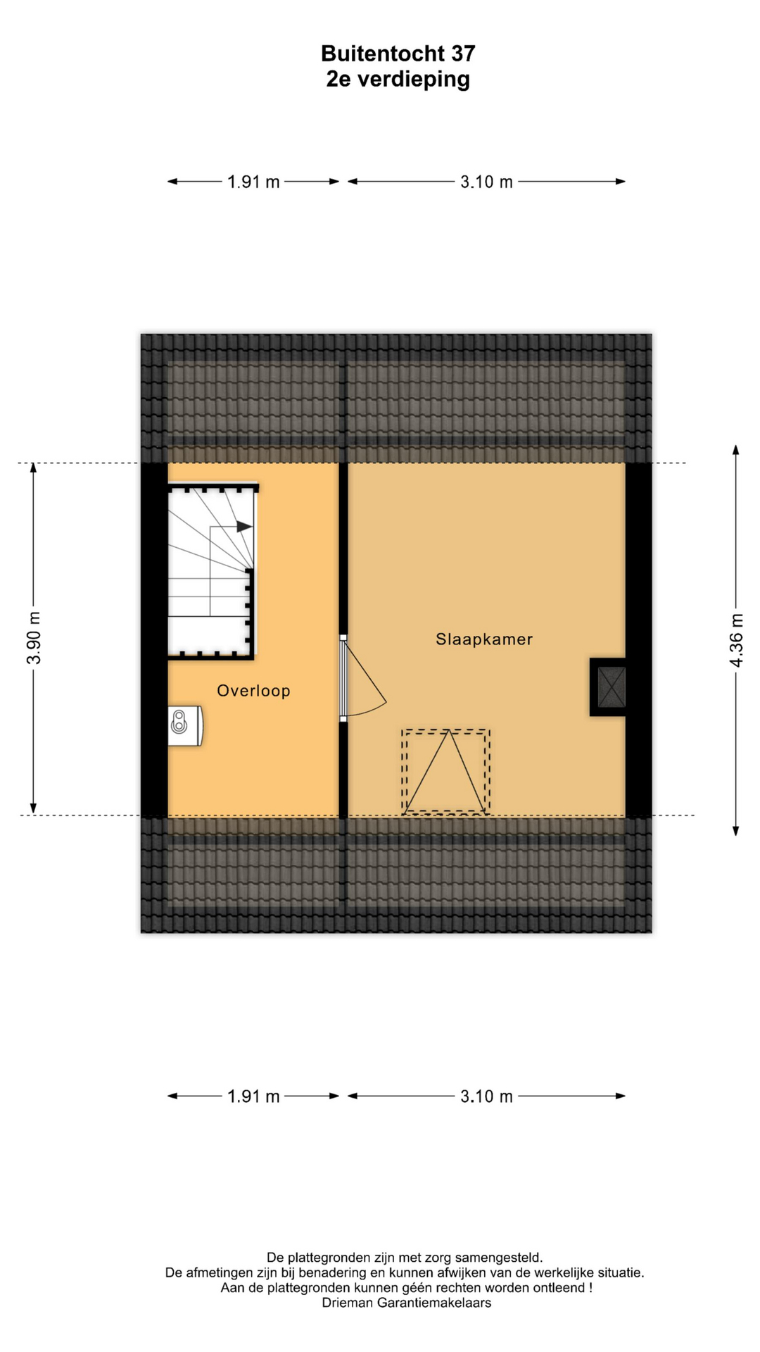 De zolderverdieping biedt een ruime overloop en een vierde slaapkamer. Deze kamer is ideaal als extra slaapkamerruimte, werkruimte of hobbykamer — wat je maar wilt.
