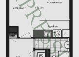 Liever toch een aparte slaapkamer? Ook dat is te realiseren door de keuken bijvoorbeeld te verplaatsen naar de woonkamer of naar de ruime hal. Zie de opties in de ‘impressie plattegronden’.