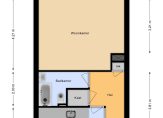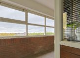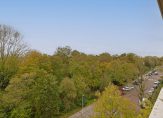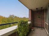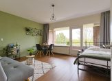 De woon-/slaapkamer (circa 4.98 x 4.17/3.26 m) is slim ingedeeld, zodat je er gemakkelijk een gezellig zitgedeelte, eethoek en slaapruimte kunt creëren. Dankzij de grote ramen stroomt het licht naar binnen en kijk je vrij uit over de bomen van het park — een heerlijk groen uitzicht. Vanuit de woonkamer stap je zo het balkon op, waar je in alle rust kunt genieten van een kop koffie in de ochtendzon of een drankje aan het einde van de dag.