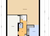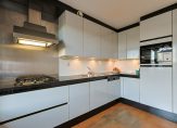 Ruime entree met hal, meterkast, trapkast en toilet voorzien van stijlvolle metrotegels. De lichte en brede woonkamer (circa 40 m2) aan de achterzijde biedt dankzij de grote raampartijen en schuifpui naar de tuin een heerlijke leefruimte. De woonkamer heeft een parketvloer en spachtelputz wanden.