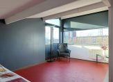 Landing with access to the large roof terrace (neighbours have converted this into an additional room – offering interesting possibilities!). There are three bedrooms (approx. 5.13 x 3.75 m, 4.20/3.20 x 2.92 m, and 4.20 x 2.11 m), including the master bedroom with an en-suite bathroom featuring a bathtub and washbasin. The second bathroom, accessible from the landing, includes a shower, washbasin, and toilet.