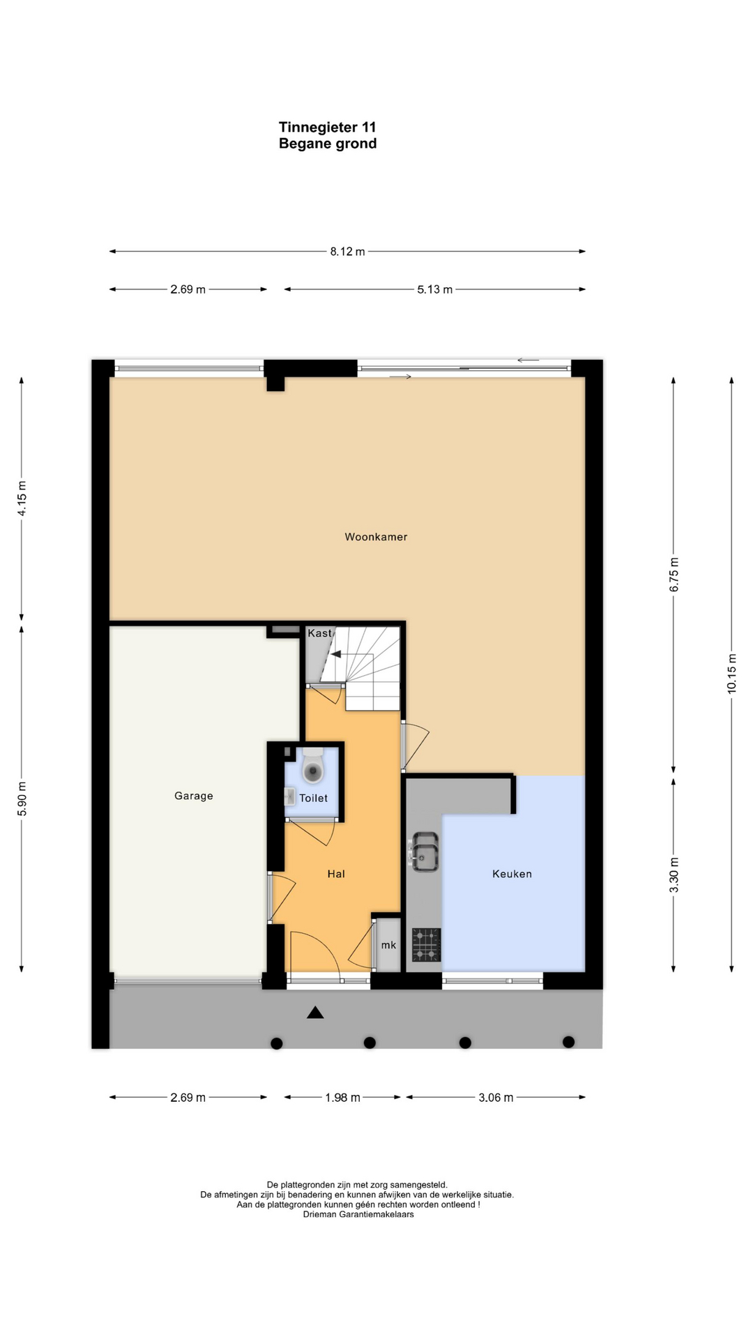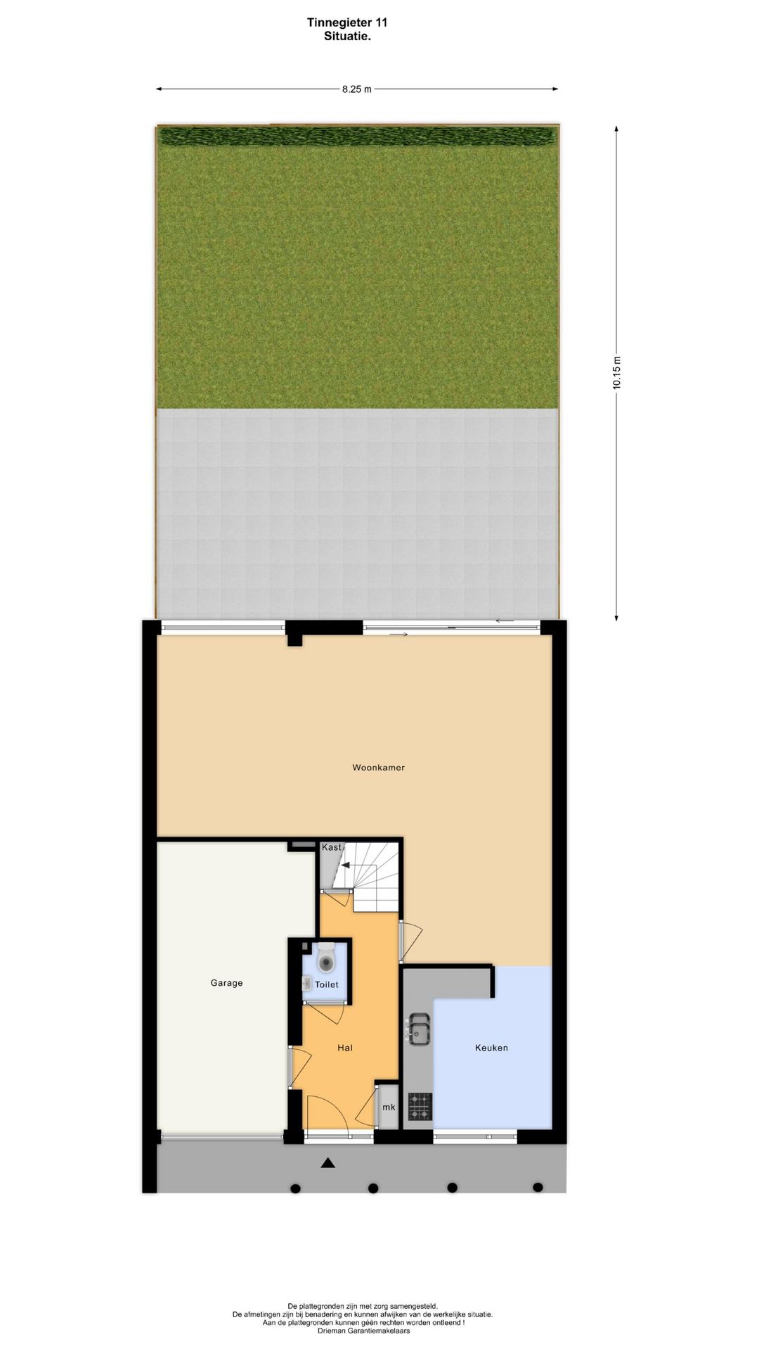 Aan de voorzijde bevindt zich de halfopen keuken, uitgerust met inbouwapparatuur. Vanuit de hal is tevens de inpandige garage bereikbaar.