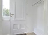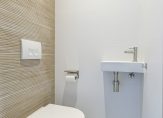 In de royale hal is ruimte voor de garderobe en in 2024 is er een nieuw hangend toilet met fonteintje gerealiseerd. De ruimte is smaakvol betegeld in neutrale tinten.