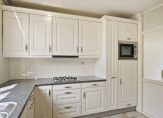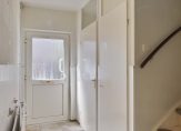 Je komt binnen via de hal met toilet en meterkast (voorzien van glasvezel). De tuingerichte woonkamer is heerlijk licht en voorzien van een praktische trapkast. De keuken in lichte kleurstelling beschikt over inbouwapparatuur zoals vaatwasser, gaskookplaat, afzuigkap, koelkast en combi-magnetron.