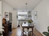 Via de hal met toilet en trapkast bereikt u de lichte, tuingerichte woonkamer met parketvloer en loopdeur naar de tuin. De straatgerichte, halfopen keuken in L-opstelling is uitgevoerd in een lichte kleurstelling en voorzien van diverse inbouwapparatuur, waaronder een koelkast, vaatwasser, 4-pits gasfornuis, afzuigkap en combimagnetron.