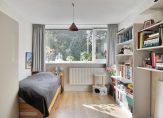 Via de vaste trap bereikt u de voorzolder met bergruimte, cv-opstelling (Nefit HR, 2001) en een royale vierde slaapkamer met nieuw kantelraam en knieschotten voor extra opbergruimte.