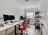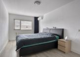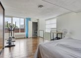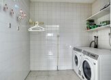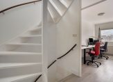 Een vaste trap leidt naar de tweede verdieping, waar zich een ruime vierde slaapkamer bevindt. Deze kamer biedt directe toegang tot een zonnig dakterras op het zuidoosten – ideaal voor een kopje koffie in de ochtendzon. Op deze verdieping is ook een aparte wasruimte met aansluiting voor wasmachine en droger, mechanische ventilatie en de CV-opstelling.