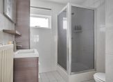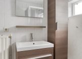 Overloop met toegang tot drie ruime slaapkamers. De grote slaapkamer is voorzien van airconditioning. De volledig betegelde badkamer beschikt over een douchecabine, tweede toilet en een wastafelmeubel met bergruimte.