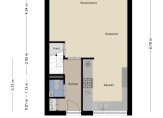 Aan de voorzijde bevindt zich de royale hoekkeuken met diverse inbouwapparatuur, waaronder een combimagnetron, 4-pits gaskookplaat, afzuigkap, vaatwasser en koel-vriescombinatie.
