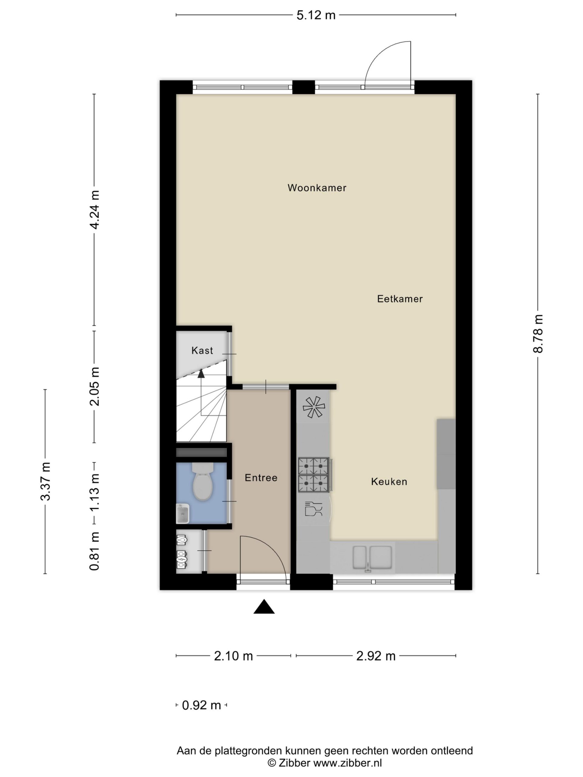 Via de parkeergelegenheid op eigen terrein  bereikt u de entree van de woning. In de hal bevinden zich de meterkast, een toiletruimte en de trapopgang naar boven.