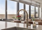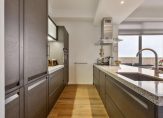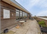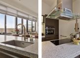 De grote living van ca. 50 m² is licht en ruim, met twee sets openslaande deuren naar een groot dakterras ( 70 m²) rondom het appartement op het oosten en zuiden. De open keuken met kookeiland is voorzien van hoogwaardige inbouwapparatuur, waaronder een koelkast, vriezer, combimagnetron, inductiekookplaat, afzuigkap en vaatwasser. Vernieuwde meterkast.