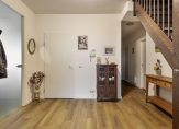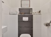 Royale hal met intercom. Een volledig betegeld toilet met zwevend sanitair en fonteintje, een garderobe, en een technische ruimte met een nieuwe c.v.-installatie (Nefit 2022) en mechanische ventilatie.