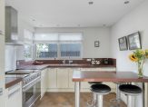 De woning is modern met een ruime woonkeuken, fijne woonkamer met erker en houtkachel. De keuken is goed onderhouden en voorzien van diverse inbouwapparatuur waaronder een “Boretti” gasfornuis 5-pits met grillplaat en 2 elektrische ovens, rvs afzuigkap, quooker, vaatwasser en inbouwkoelkast. Dit is afgewerkt met een Terrazzo composiet werkblad. In de keuken is een bijbehorende eettafel gemaakt met plaats voor 4 personen. De begane grond is voorzien van een mooie plavuizen vloer met vloerverwarming.