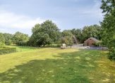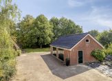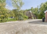 Zoals het hoort, staat naast de woonboerderij een stookhut. De tuin is verzorgd aangelegd met terras, gazon en siertuin. Door zijn formaat van maar liefst 5.915 m² is het ideaal voor het houden van paarden en dieren. Achter de woonboerderij staat een royale vrijstaande stenen schuur van ca. 67 m², welke is ingedeeld als garage van 33 m² en 2 paardenboxen. De mogelijkheid bestaat om er een dubbele garage van te maken. Naast de schuur is de paardenbak met aansluitend weiland. Achter en naast de schuur is volop ruimte voor het houden van een moestuin. Op de lange oprit is er ruimte voor meerdere auto’s en paardentrailers.