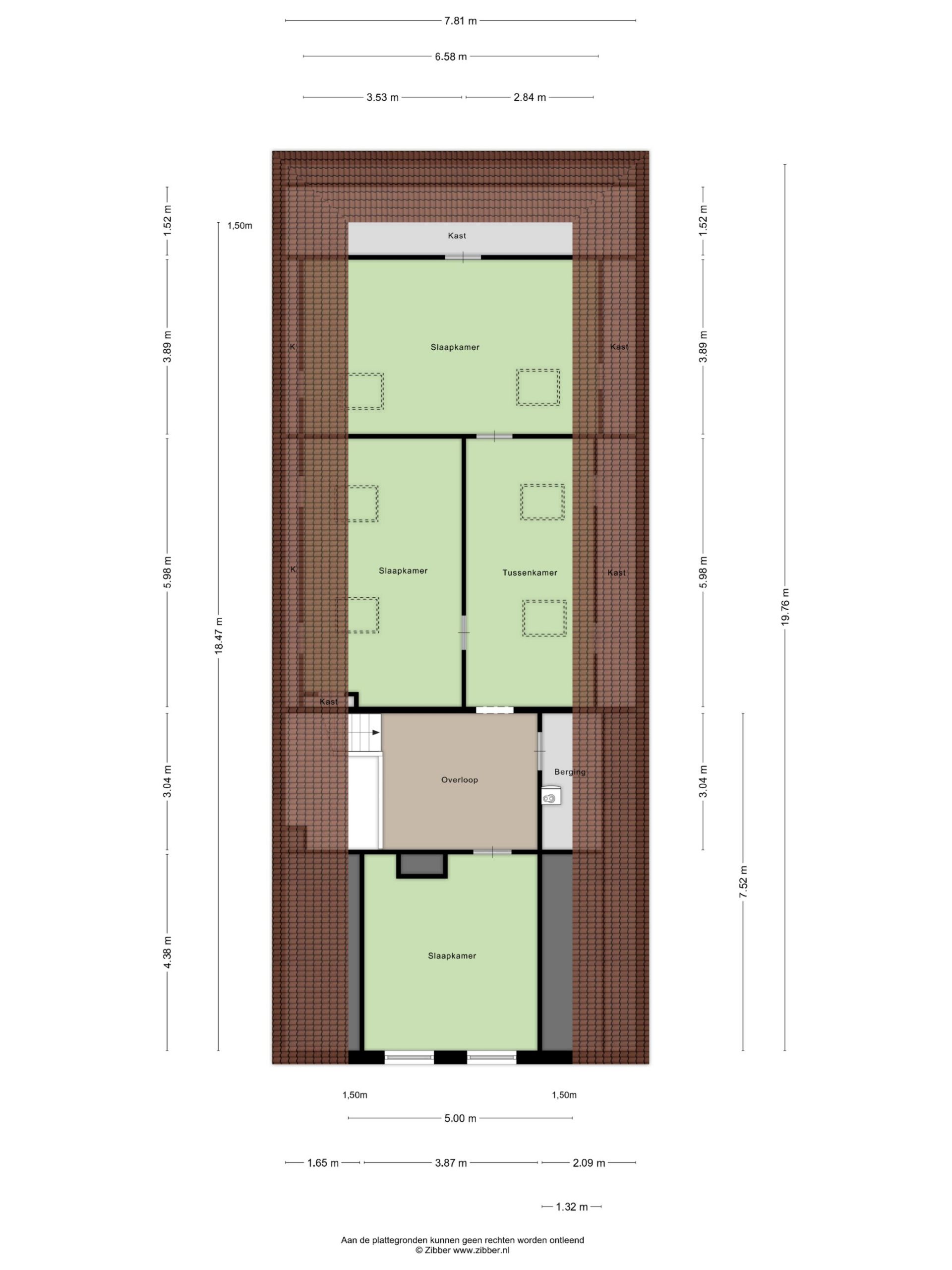 Royale overloop met vide en berging met stookruimte. Aan de voorzijde is een ruime slaapkamer van ca. 17 m². Aan de achterzijde zijn 3 royale kamers van ca. 20, 16 en 14 m² , waarvan 2 in gebruik zijn als slaapkamers en 1 als tussenkamer met 2 dakramen, ideaal voor extra werkplek of hobbyruimte. Achter de achterste slaapkamer is nog een royale bergkast over de gehele breedte.