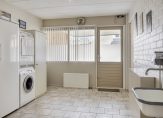 Vanuit de badkamer en de hal is er toegang tot de bijkeuken/berging. Ook deze ruimte is zeer netjes afgewerkt, voorzien van verwarming en met de aansluitingen voor de wasapparatuur. Een (gedeeltelijke) invulling als hobbyruimte of thuiswerkplek is goed mogelijk!