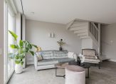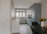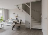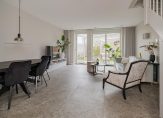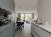 Entree hal, meterkast, opstelplaats warmtepomp en modern zwevend toilet met fontein. Lichte woonkamer welke is voorzien van een fraaie Italiaanse plavuizenvloer met vloerverwarming en koeling. Aan de voorzijde bevindt zich de luxe keuken welke beschikt over een Quooker, koelkast, vaatwasser, Bora inductie kookplaat met geïntrigeerd afzuigsysteem.