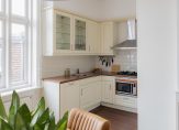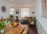 Via de entree aan de voorzijde bereik je dit charmante appartement boven een winkelpand (momenteel een kapsalon). Binnen stap je in een lichte woon-eetkamer met een frisse uitstraling en een nette open keuken voorzien van diverse inbouwapparatuur – als jij lekker staat te koken zitten je vrienden aan de grote eettafel.