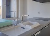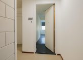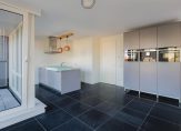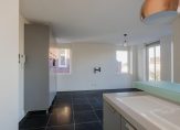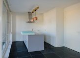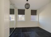 Het gehele appartement is voorzien van een zwarte tegelvloer met vloerverwarming.