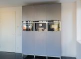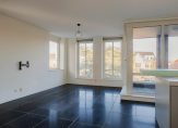 Hal, luxe toiletruimte met wandcloset en fontein, woonkamer met zicht op het “Vierkant” en deur naar inpandig balkon, fraaie open keuken met grijze inrichting, kook-/spoeleiland, aan één zijde tegen de wand geplaatst, met composiet stenen werkblad en bar, inductiekookplaat, RvS afzuigschouw en vaatwasmachine. In de hoge kastenwand zijn o.a. een stoomoven, koffiemachine en combi-oven. Verder is er één grote en één kleine slaapkamer, fraaie badkamer alwaar inloopdouche met hardglazen wand, wastafel in meubel en handdoekradiator. Tevens een aparte ruimte alwaar opstelling wasapparatuur en cv combiketel.