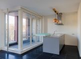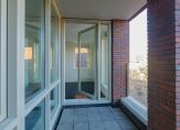 Inpandig balkon van 5m² op het Westen. De glazen balustrade biedt zicht op het bruisende “Vierkant”.
