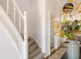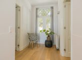 Ook hier een imposant lange hal met deur naar balkon, 3 fantastisch grote slaapkamers met mooie raampartijen, luxe badkamer met inloopdouche, ligbad en brede wastafel met 2 kranen op houten meubel, apart 2e luxe toiletruimte en 4e zeer royale was-/werkkamer.