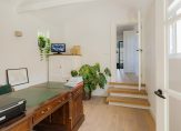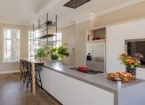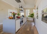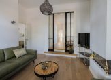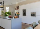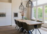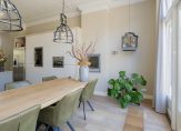 Fraai portaal waarin de markant hoge voordeur, imposant lange hal met de gerestaureerde authentieke granitovloer, garderobe en toiletruimte en een deur naar de tuin. Links van de hal een zeer royale woon-/leefkeuken met luxe keukeninrichting in mat wit uitgevoerd, prachtig kook-/ en spoeleiland met houten eetbar en alle inbouwapparatuur o.a. een fraaie wijnkoeling. Ook een gezellige gashaard en de grote achterpui met veel glas en openslaande deuren naar de tuin ontbreken niet. Rechts van de hal is er een tv-/zitkamer met een gashaard en dubbele deuren die toegang geven tot de opkamer. Deze opkamer met een grote op maat gemaakte kastenwand is zeer geschikt als speel-/of werkkamer en heeft een trap naar de grote droge kelder met stahoogte. In het voormalige cellencomplex is een prachtige werkkamer gecreëerd, een bergkamer, een technische ruimte en is er één cel in originele staat behouden gebleven. De inpandig bereikbare garage is groot en o.a. voorzien van een elektrische segment deur met loopdeur en een vaste trap naar ruime bergzolder.