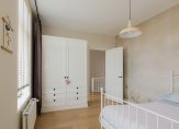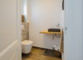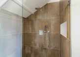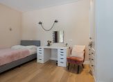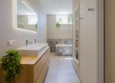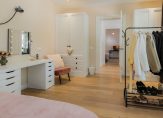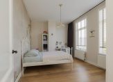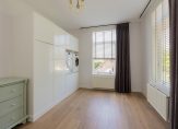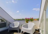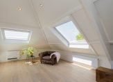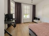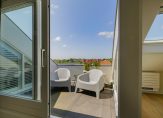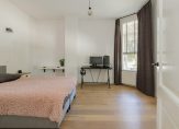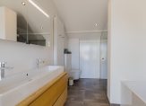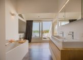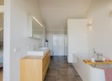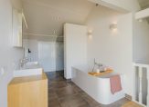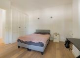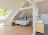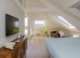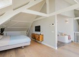 De hoofdslaapkamer bestrijkt de gehele etage en is voorzien van een inpandig balkon/loggia op het westen, inloopgarderobe en een luxe badkamer met ligbad, inloopdouche, 3e toilet en brede wastafel met twee kranen op houten meubel.