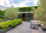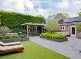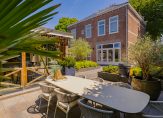 De prachtig aangelegde tuin ligt rondom de woning en heeft o.a. een nieuw in authentieke stijl smeedijzeren hek, verlichting en beregening. De zeer zonnige achtertuin van 13 meter diep en 7.5 meter breed biedt veel privacy en is o.a. voorzien van een grote veranda waarin het ook in de koudere maanden goed toeven is.