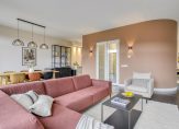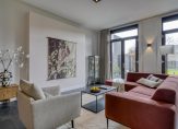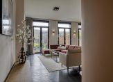 Via de dubbele deuren betreedt u de lichte sfeervolle en vooral brede living met hoge ramen en middels de drie grote openslaande deuren op het zuiden komt de tuin letterlijk naar binnen.