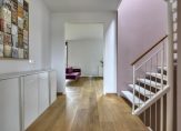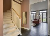 Mooie brede entree waar bij binnenkomst direct het hoge plafond een rijk en ruimtelijk gevoel geven. De royale hal heeft 3 deuren naar respectievelijk de keuken, de living en de werk-/tv-kamer aan de voorzijde. In de hal vindt u de trap naar de verdieping, een trapkast, de meterkast, de garderoberuimte en een ruim toiletruimte met wandcloset en fonteintje.