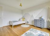 De zeer royale vierde slaapkamer met grote raampartij is gelegen aan de achterzijde en de vijfde slaapkamer ligt aan de voorzijde. Beide slaapkamers zijn voorzien van mooi afgetimmerde knieschotten met volop bergruimte.