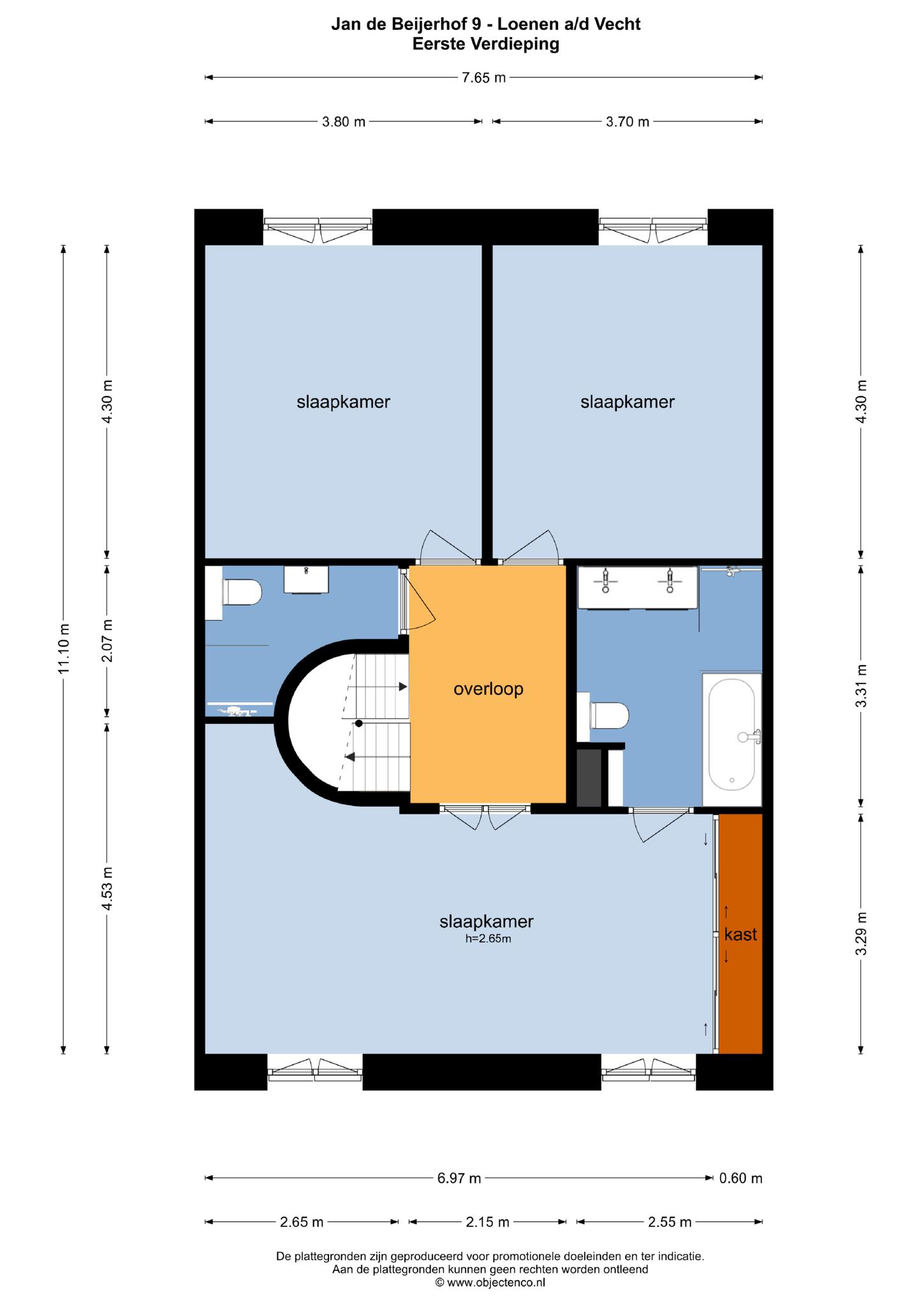 De ruime tweede en derde slaapkamer liggen beide aan de achterzijde van de woning, met ook hier weer veel lichtinval. Naast deze slaapkamers ligt de tweede badkamer met inloopdouche met regendouche, derde toilet, wastafel en handdoekradiator. De gehele eerste verdieping is voorzien van een massief houten vloerdelen.