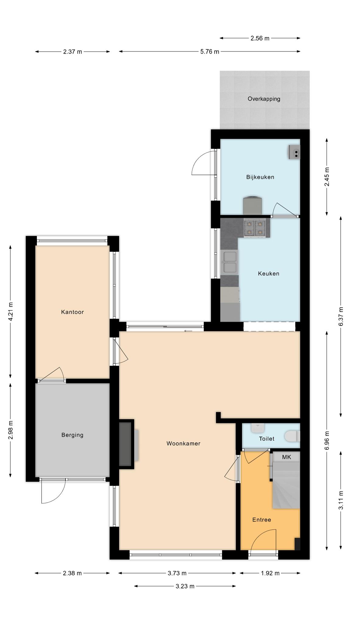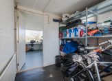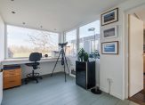 Vanuit de woonkamer is de kantoorruimte bereikbaar, eveneens met prachtig uitzicht. Via het kantoor heb je toegang tot de berging, voorzien van elektra en verwarming. De berging is gelegen aan de voorzijde en heeft een deur naar de voortuin.